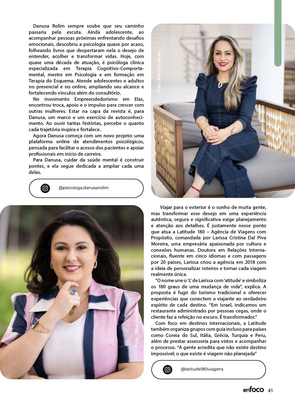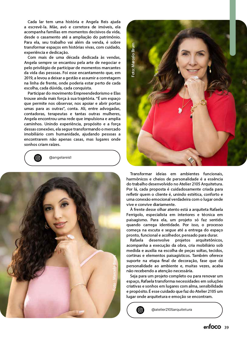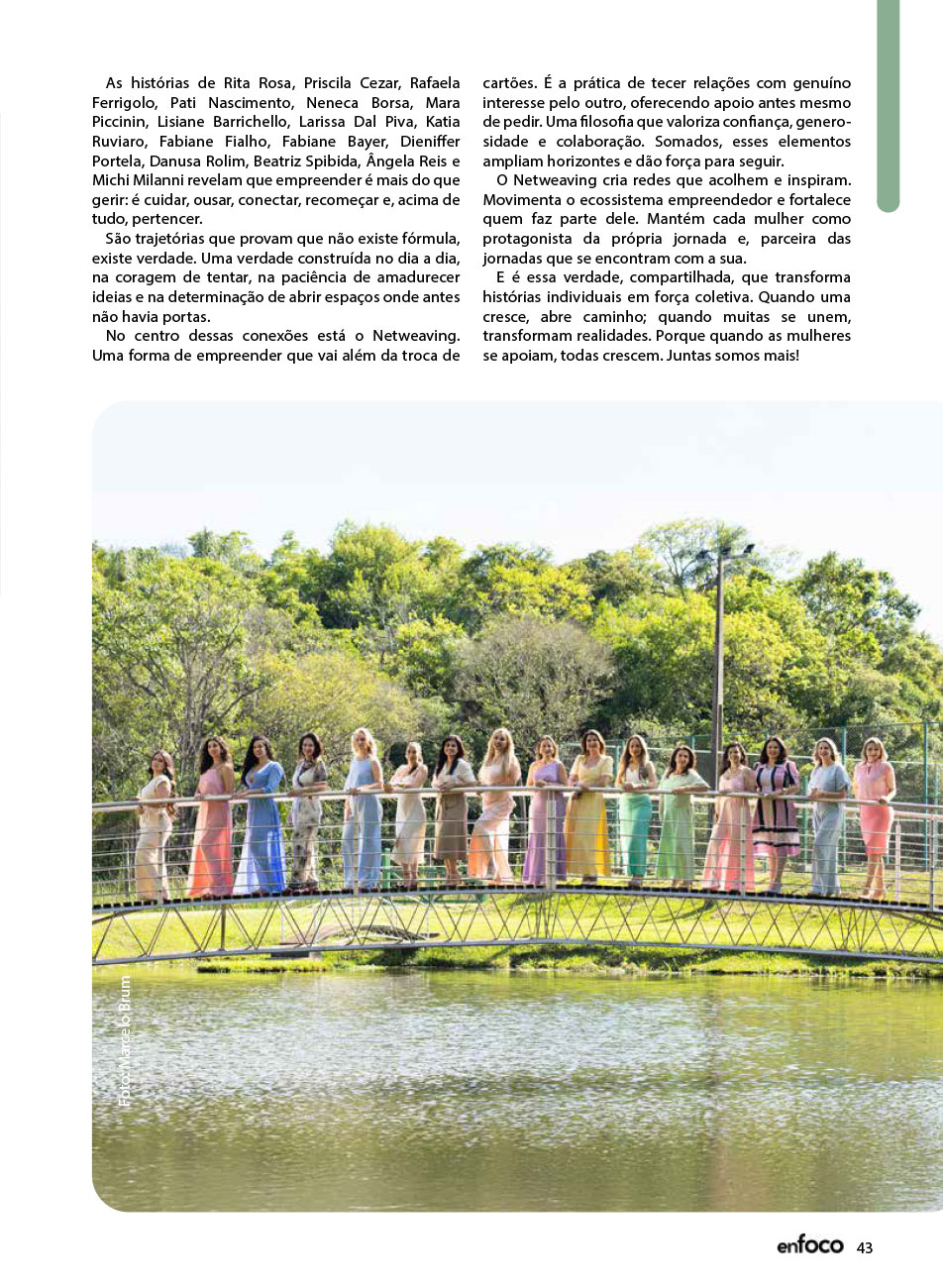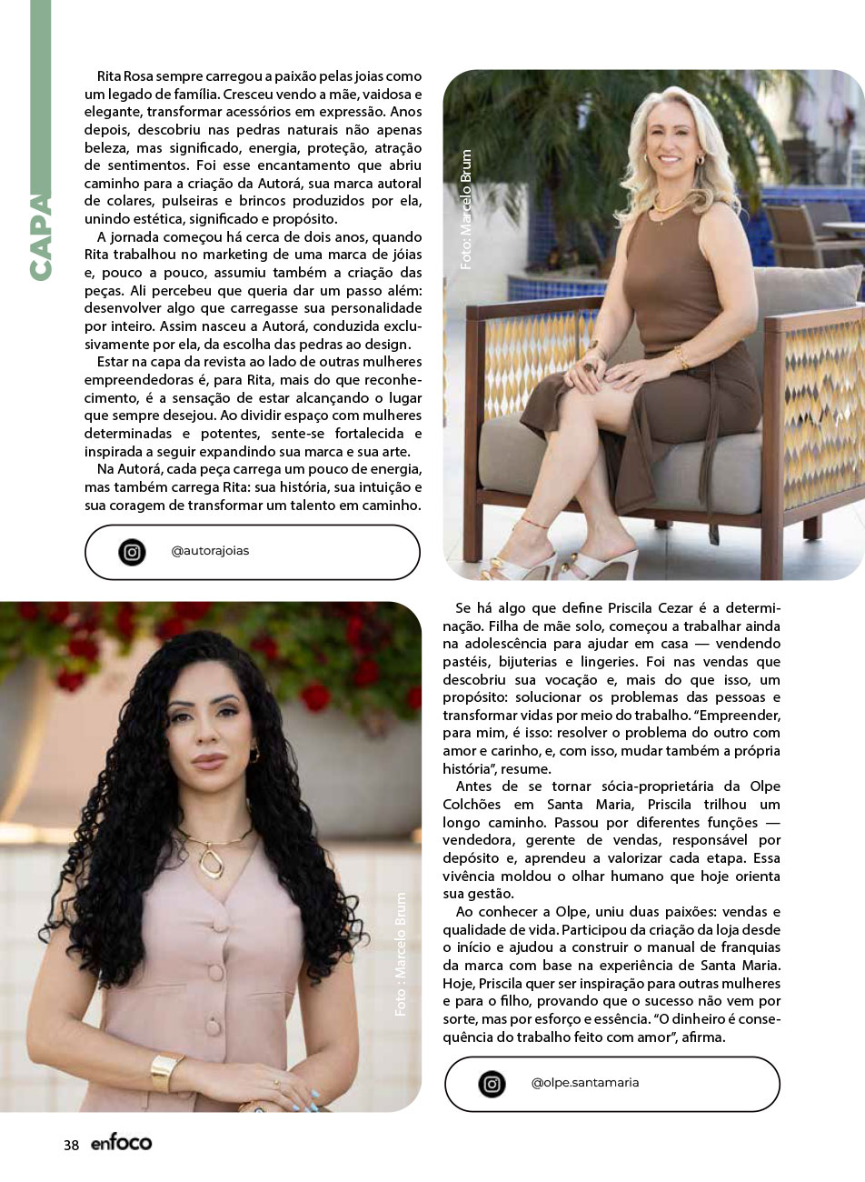 A Capa da Revista Enfoco dos meses de Novembro e Dezembro de 2025 foi mais uma ação promovida e organizada pelo movimento Empreendedorismo e Elas, para a 7ª edição. Uma maneira de levar o propósito do movimento de juntas somos mais para nossa sociedade Santa-mariense.